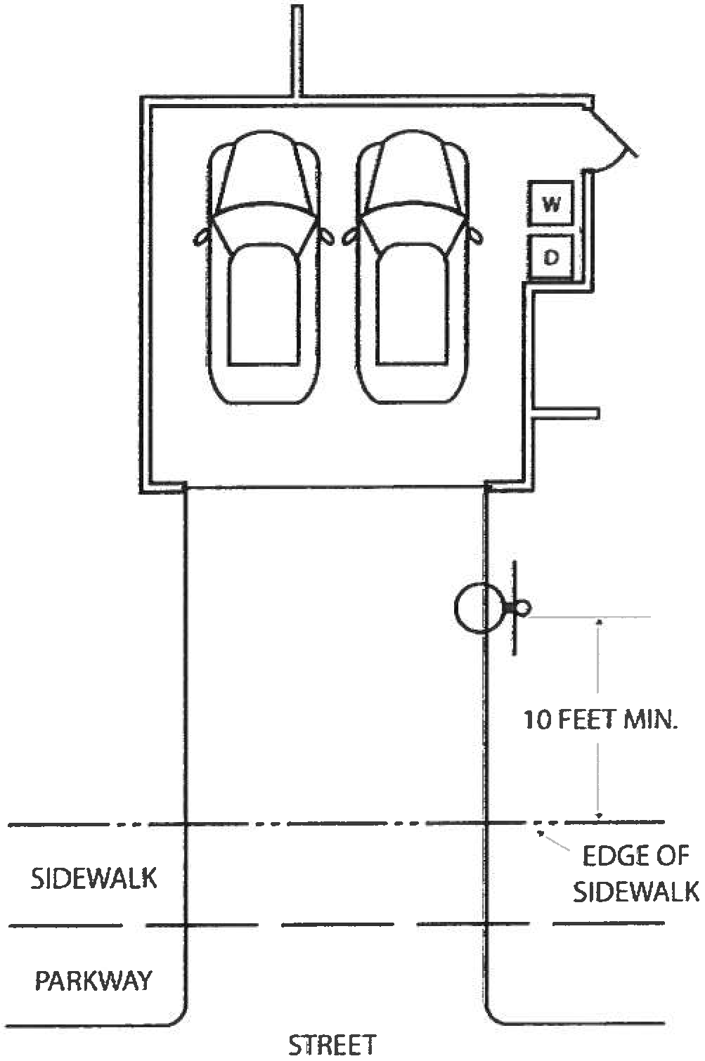 Screening of trash enclosures/recycle containers. Trash receptacles (including recycling and green waste containers) shall not be stored within a required front or street side yard and shall be screened from view of the public right-of-way by a solid fence not less than four feet in height. Exceptions to fence height standards may be granted by the designated approving authority to ensure proper placement and screening of trash receptacles. See figure 5.3-4, screening of trash enclosures/recycling containers.