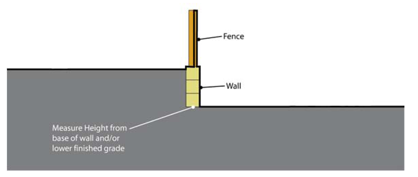 Fence height shall be measured as the vertical distance between the finished grade at the base of the fence and the top edge of the fence material. Grade may not be modified in order to increase fence height.