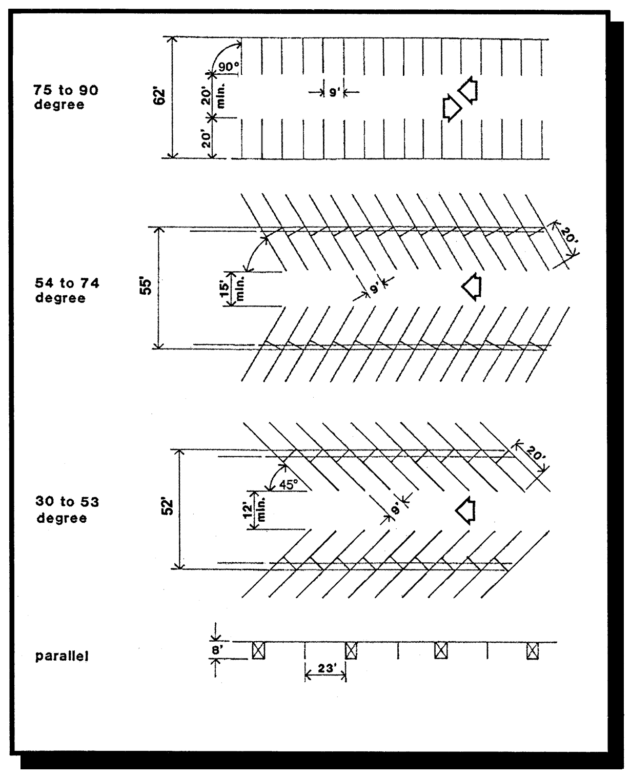 Plan Requirements. Plans for the layout of off-street parking facilities shall be in accord with the following minimum requirements: