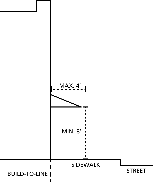 Awnings shall maintain a minimum clearance of eight (8) feet above finished grade.