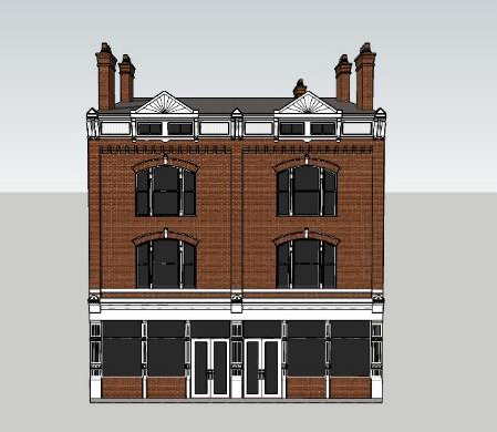 The capital may be achieved through a cornice line, cap or crown at the top of the front façade.