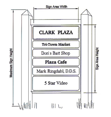 Maximum height and area. Maximum sign height is eight (8) feet. Maximum area is one (1) square foot for each lineal foot of business frontage. Maximum area is fifty (50) square feet when located within ten (10) feet of any property line; for each addition of ten (10) feet of setback from the closest property line, the sign area may be increased by an additional fifty (50) square feet up to a maximum of three hundred (300) square feet.