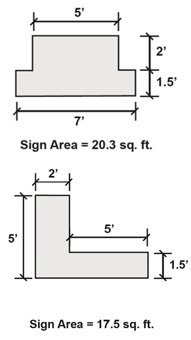 Irregular geometric shapes. If a sign consists of a symbol or statuary, or an irregular geometric shape without an accepted mathematical formula for calculating area, the entire surface area of the symbol or statuary, which can be enclosed within a rectangle or the closest geometric shape, shall be determined as the sign area.