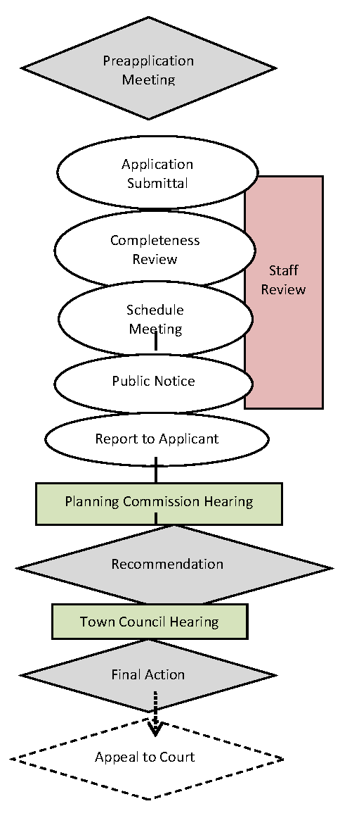The planning commission, at regular meetings, shall review and prepare a report, including its recommendation, for transmittal to the town council.