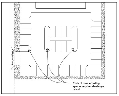 Each end of each row of parking spaces shall require a landscape island unless the end of such row of parking spaces is adjacent to a perimeter landscape screen or border as required in subsection (g). (See Figure 5)
