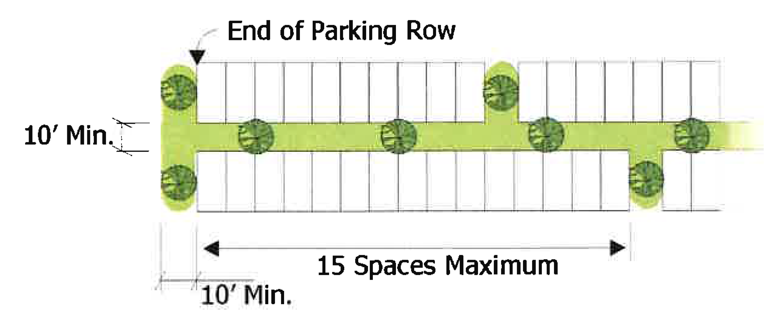 Terminal Islands. All rows of spaces should terminate in a curbed landscape island. Each island planned shall conform to the specifications described in paragraph (b) above.