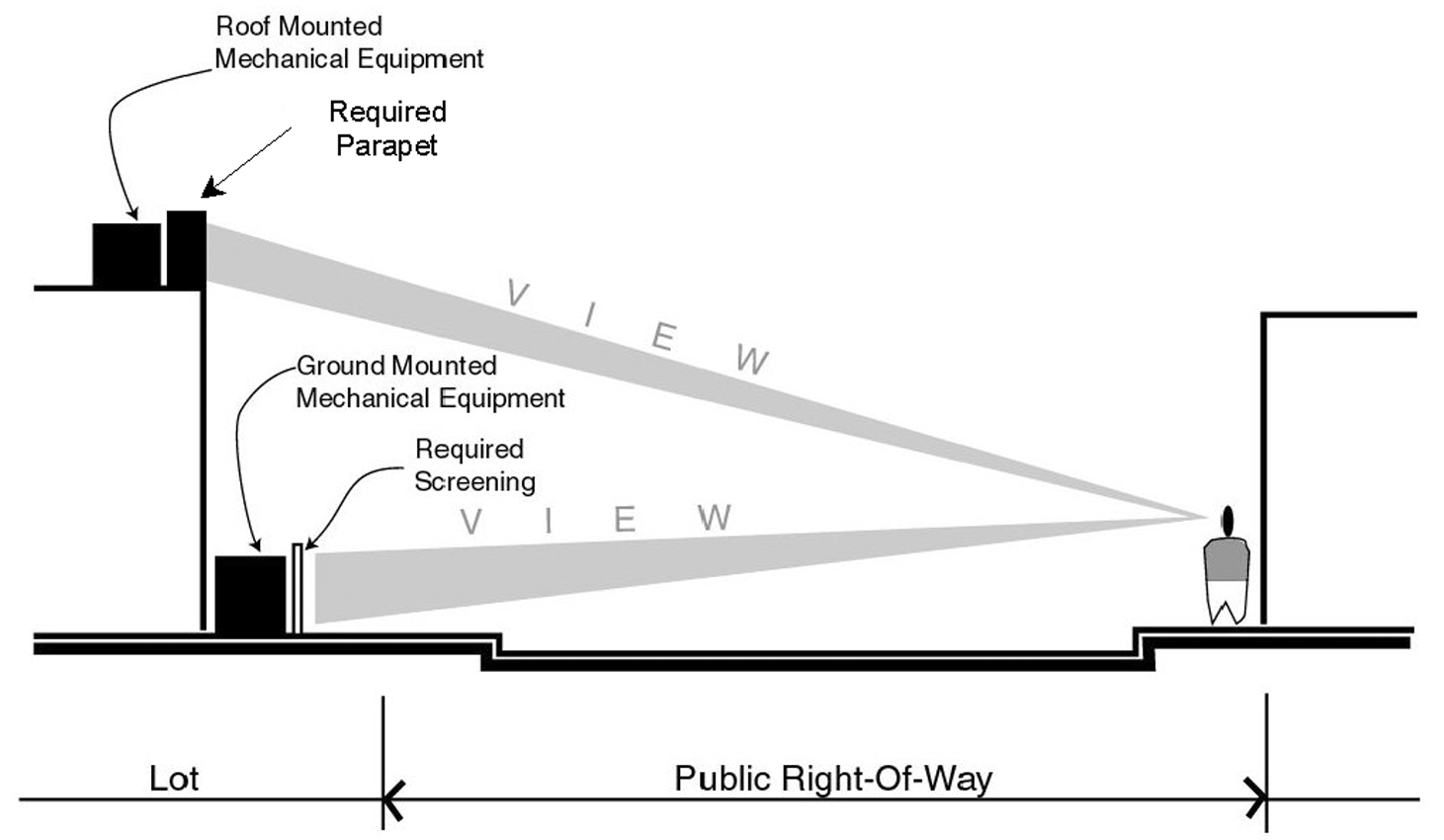 CBD and DRD Screening. Screening standards shall meet the objectives of the Downtown Design Guidelines.