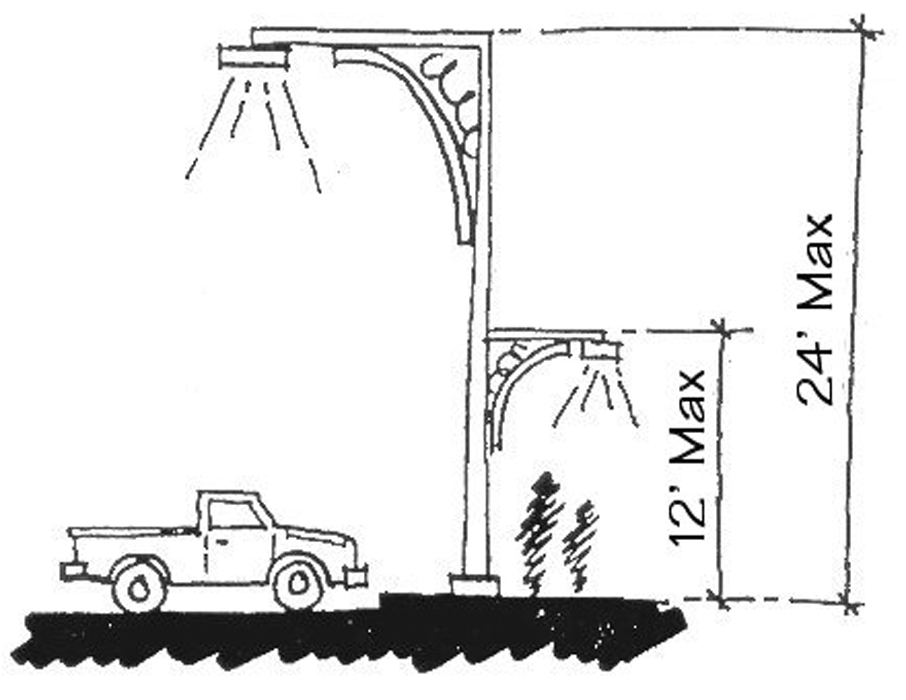 All light fixtures located within 50 feet of any residential property shall not exceed 15 feet in height.