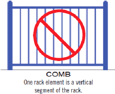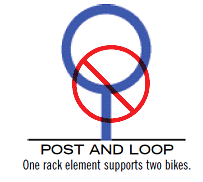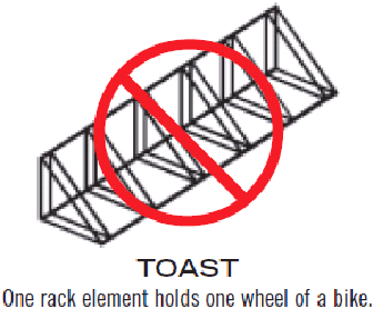 Comb, toast, school-yard, and other wheel-bending racks that provide no support for the bicycle frame are NOT recommended.