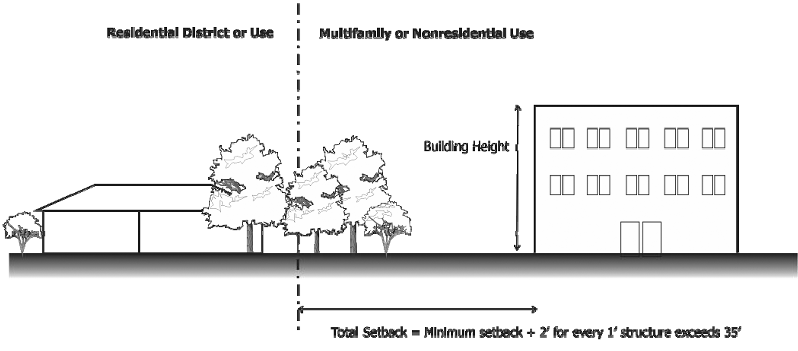 Height Limit Related to Setback. In addition to the setback requirements in Chapter 5, structures shall be setback an additional two feet for every one foot in height by which the structure exceeds 35 feet.