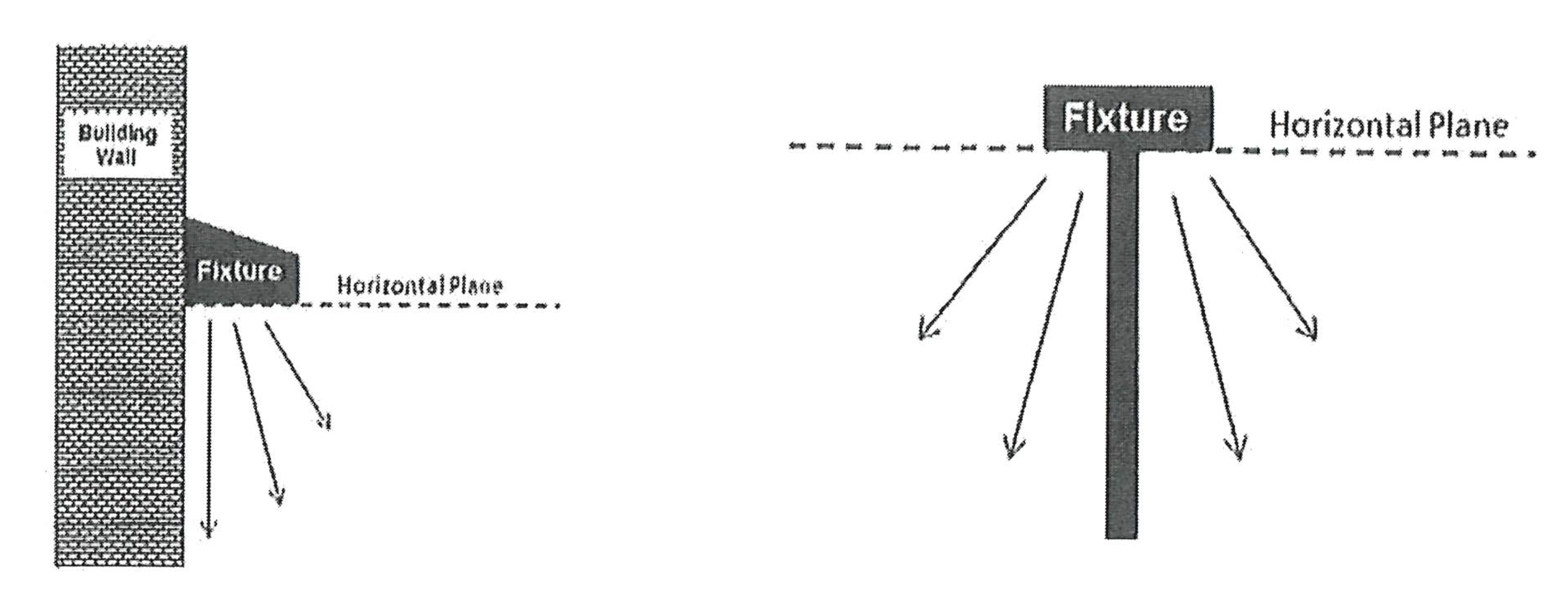 All new exterior lighting fixtures installed within the city shall utilize cutoff or full cutoff designs to ensure that no light is emitted above a horizontal plane, as depicted in the images below.