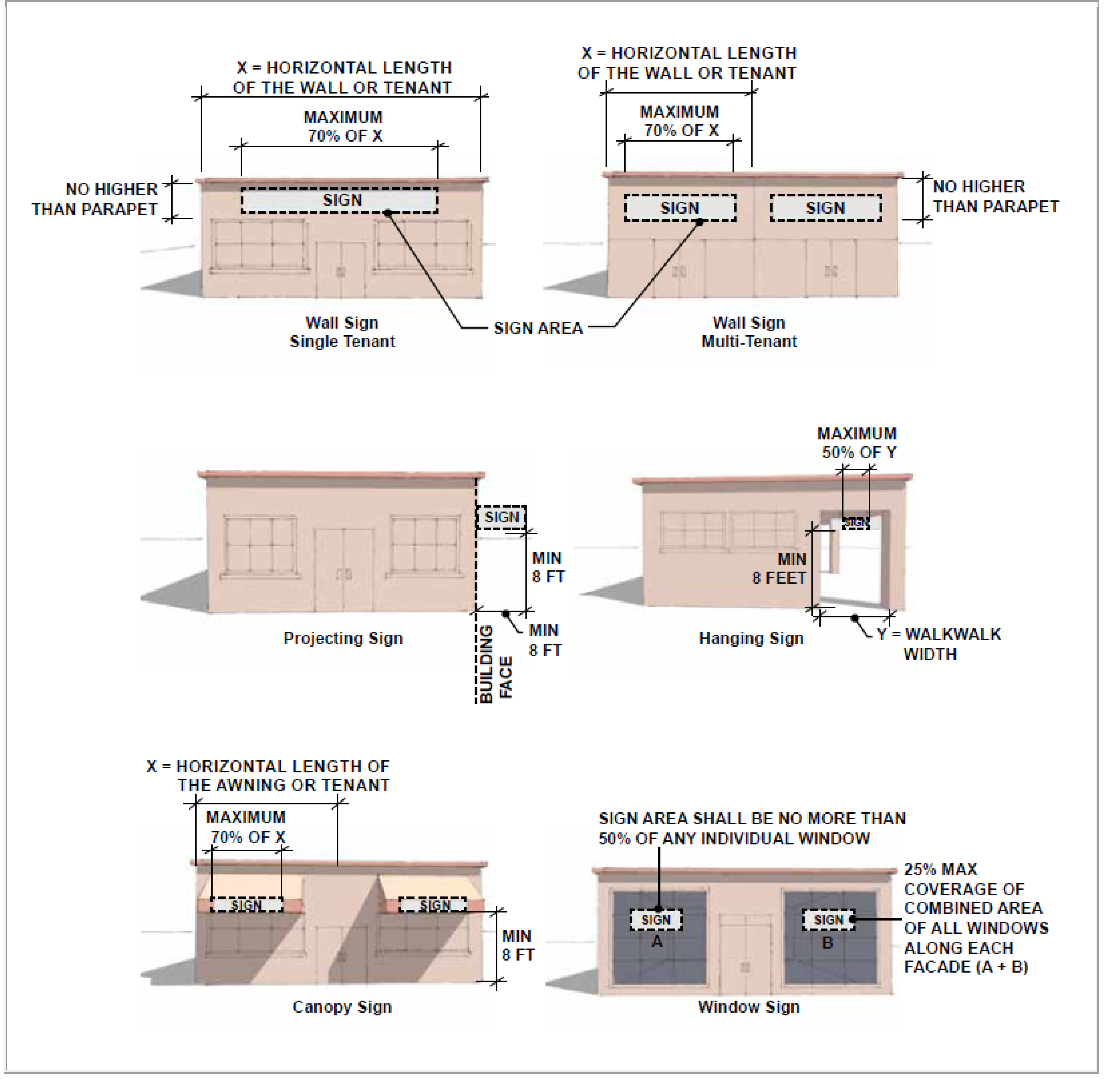 Window Signs. Window signs limited to the address, open/closed, hours of operation, occupancy and emergency information. The area of all signs shall not exceed four (4) square feet.