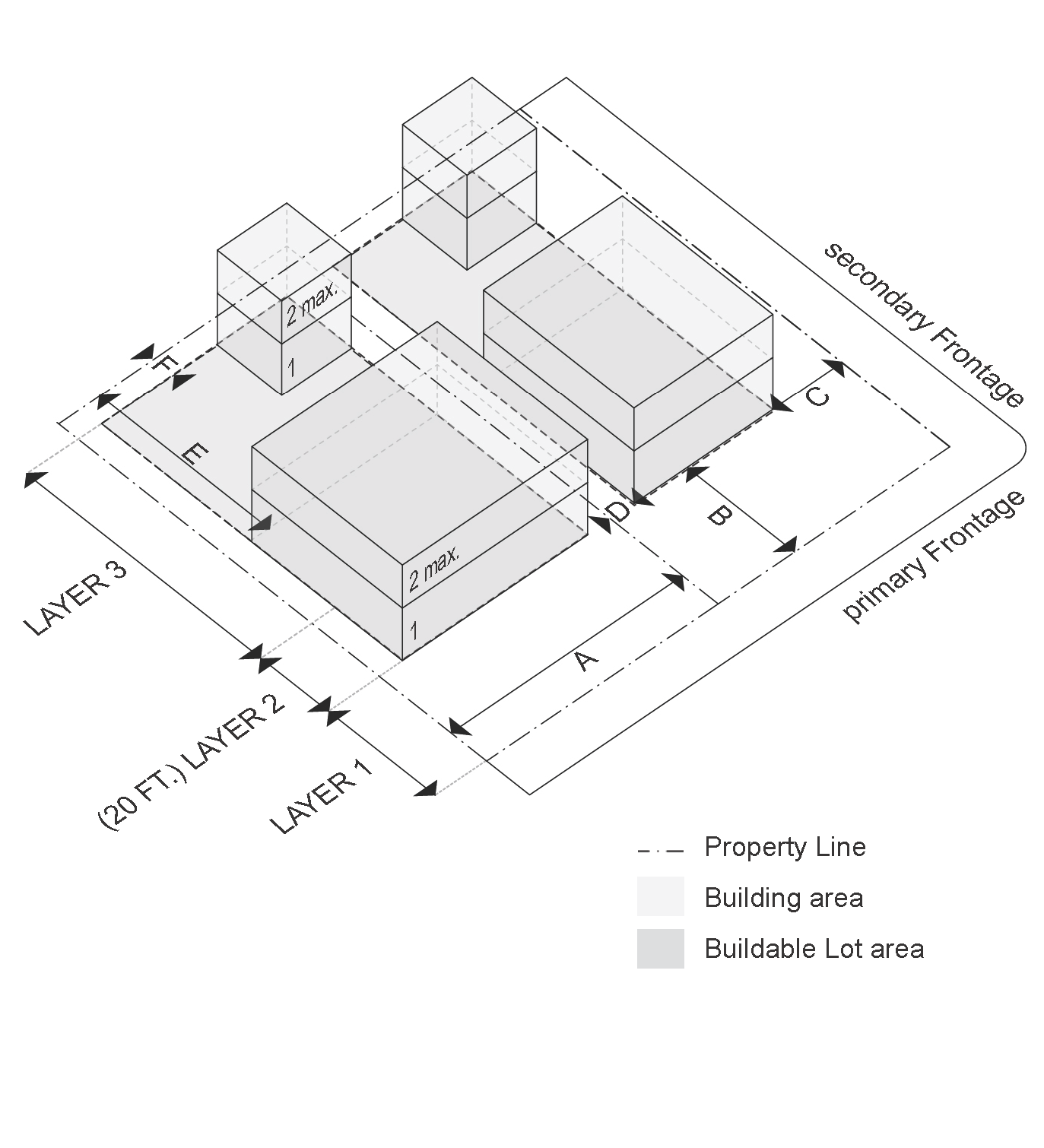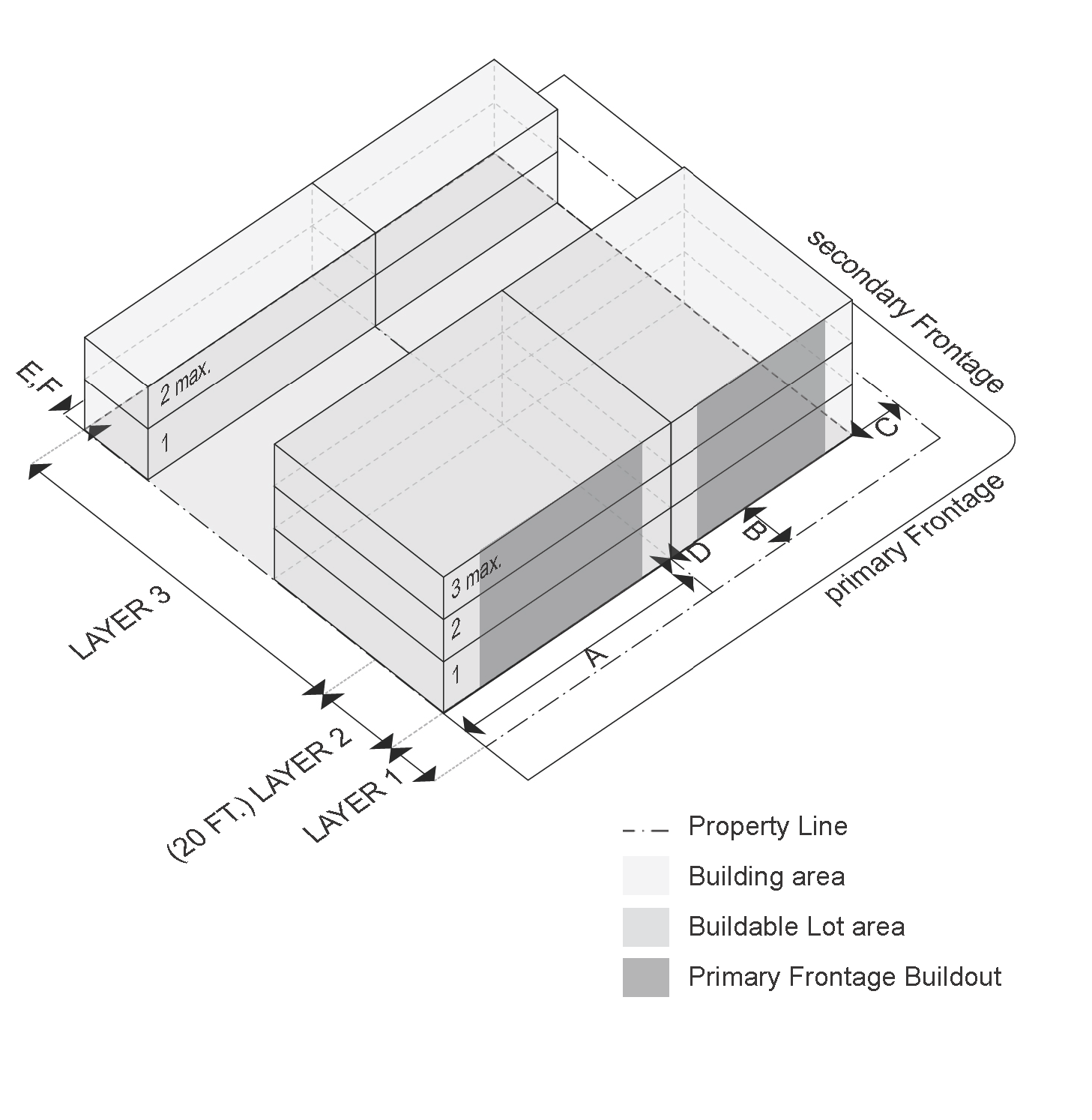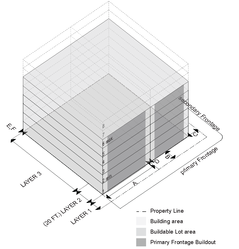 *1 Underground Parking can Encroach into Layer 1 only if it is fully underground and does not require raising the 1st floor Elevation above that of the Sidewalk.