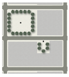 ;adv=-4q;Civic Space, Square: An Open Space available for unstructured recreation programs and Civic purposes. A square is spatially defined by Building Frontages with Streets on at least one (1) Frontage. Its landscape shall consist of pavement, lawns and trees, formally disposed. Squares shall be located at the intersection of important Thoroughfares. The minimum size shall be one-third (⅓) acre and the maximum shall be two (2) acres.