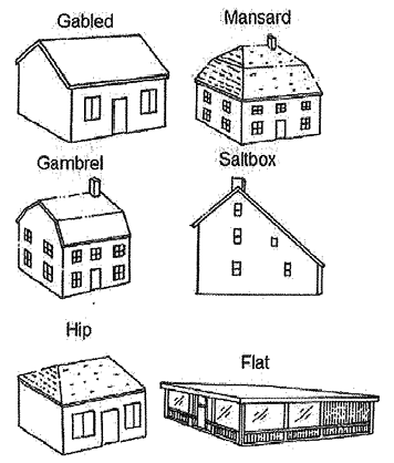 Shallow-pitch gable roofs, mansard, flat, A-frame and other irregular roof forms are prohibited unless integral to a generally recognized architectural style.