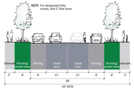 dimensions). Variations could include removal of on-street parking lanes in single-family