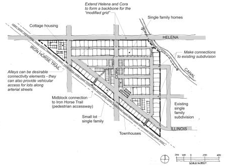 lots) and commercial zones in special circumstances, and wider sidewalks with trees