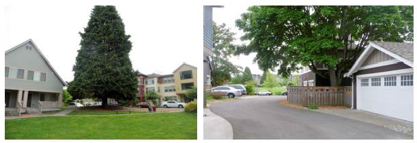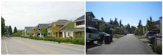 Figure 15.420.050(E). Alley access lot examples. The left example, Wheaton Court in