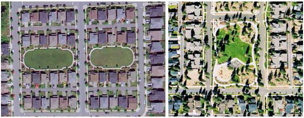 and arterial streets (note fences lining the street). (Images courtesy of Bing maps.)