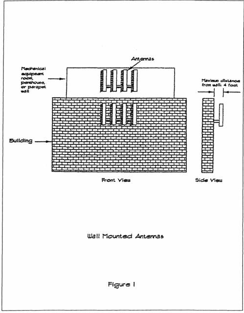 Wireless telecommunications facilities are characterized by the type and location of the antenna structure. There are four general types of antenna structures: wall mounted; roof mounted; monopoles; and lattice towers. Standards for the installation of each type of antenna are as follows:
