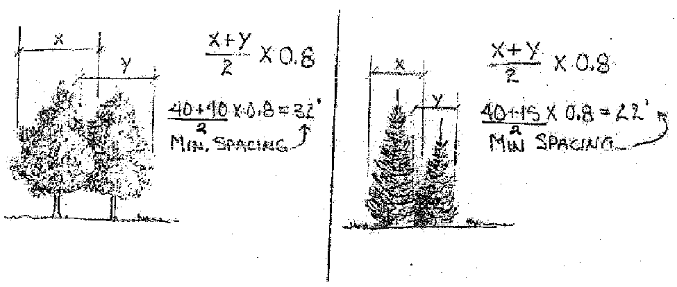 Prohibited trees. No evergreen trees or class III trees shall be planted within the required landscape strip due to safety, sight distance, and maintenance concerns.