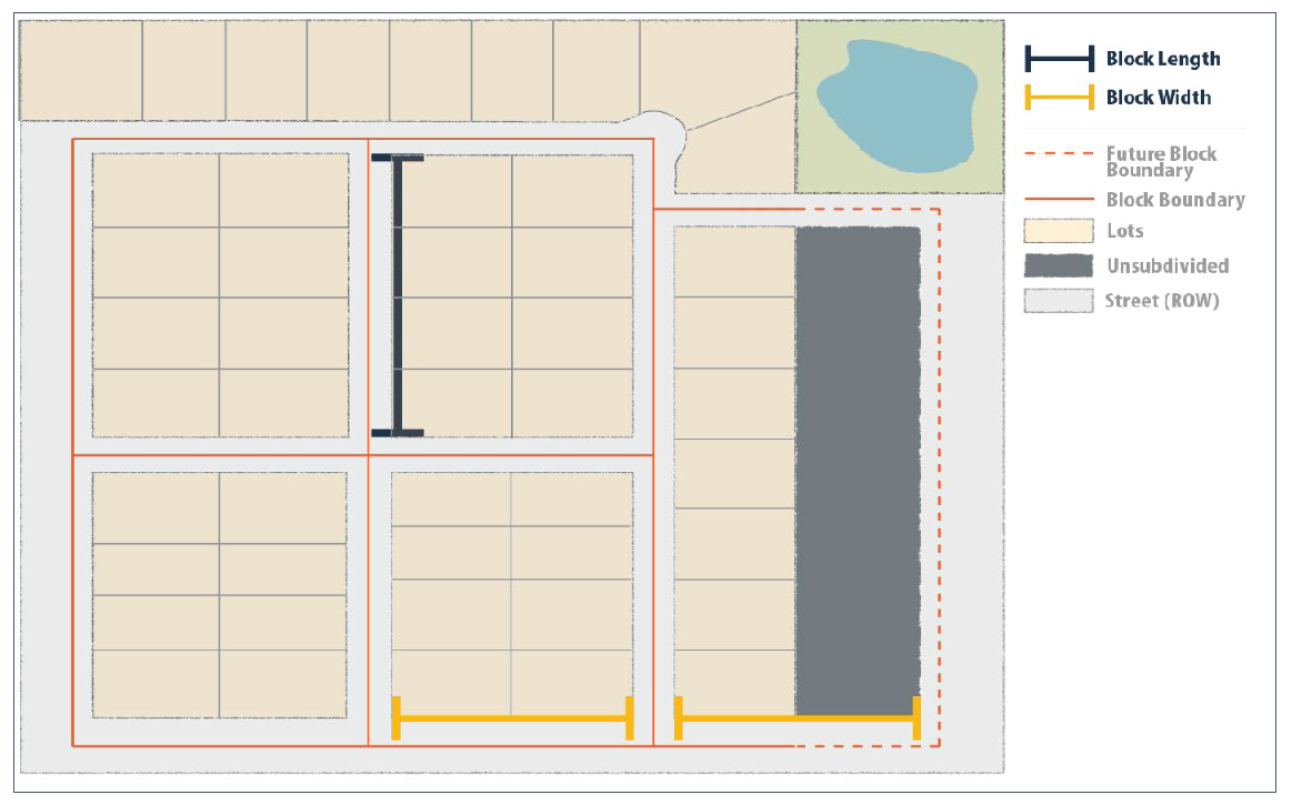 Width. Blocks shall be wide enough to allow two tiers of lots of minimum depth, except where prevented by topographical conditions or size of the property, in which case the agent may approve a single tier of lots of minimum depth. See figure 10.1.