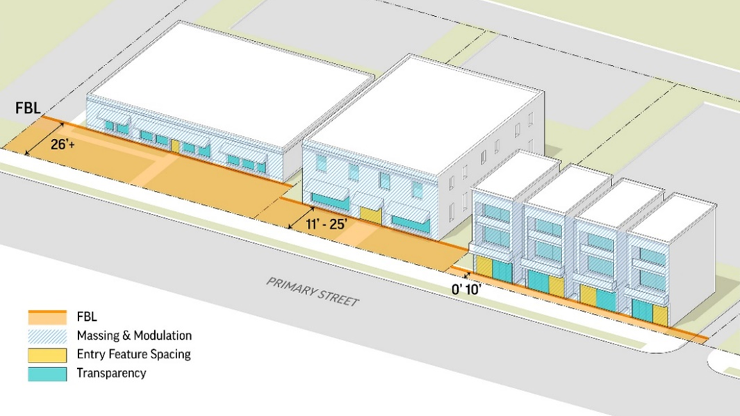 Design Objectives. Frontage design determines the relationship between private development and the streetscape and affects the character of different streets, blocks, and districts. The frontage design standards have the following design objectives:
