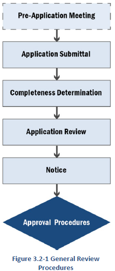 This section describes the procedural elements common to all applications (see Figure 3.2-1). Additional procedures that apply to specific applications are provided in Section 3.3, Specific Review Procedures. Generally, the procedures for all applications have eight common elements: