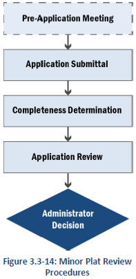 PRE-APPLICATION MEETING: A pre-application meeting is encouraged but optional for Minor Plats. Standards for pre-application meetings in Section 3.2.3 shall apply to pre-application meetings.