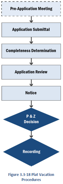 PRE-APPLICATION MEETING: A pre-application meeting is encouraged but optional for Plat Vacation. Standards for pre-application meetings in Section 3.2.3 shall apply to pre-application meetings.