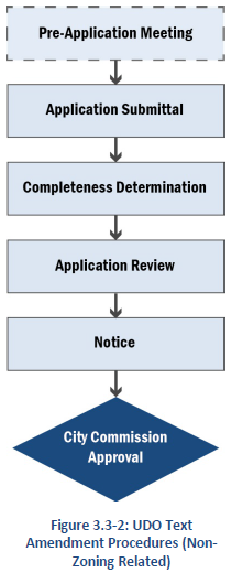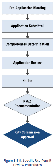 APPLICABILITY: A pre-application meeting is required prior to certain types of applications, as listed in Table 3.1-1 and Section 3.3, Specific Review Procedures. Applications for these types of approvals may not be accepted until a pre-application meeting is completed.