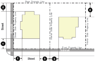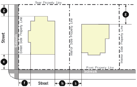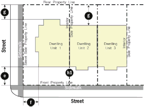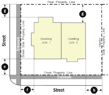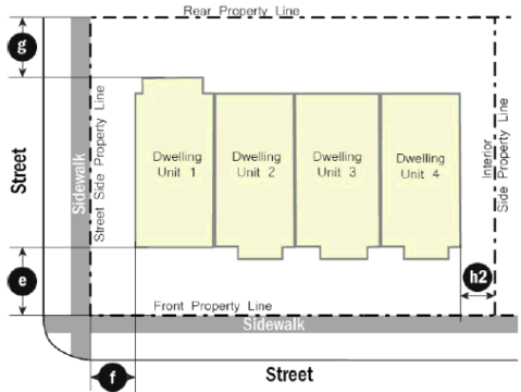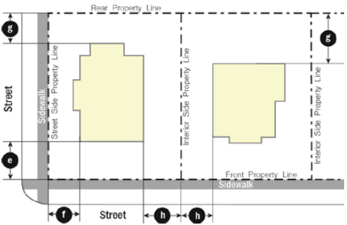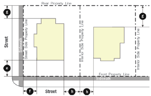 Adhering to the setback range according to the Development Standards Table