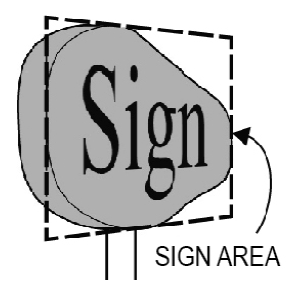 For sign messages that are nonplanar, the sign area is calculated as the smallest rectangle that encompasses the profile of the sign message and any background object, panel, cabinet or surface distinctively designed to serve as the background for the sign message. The profile used is the largest area of the sign message and background visible from any one point. See Figure 9-4.