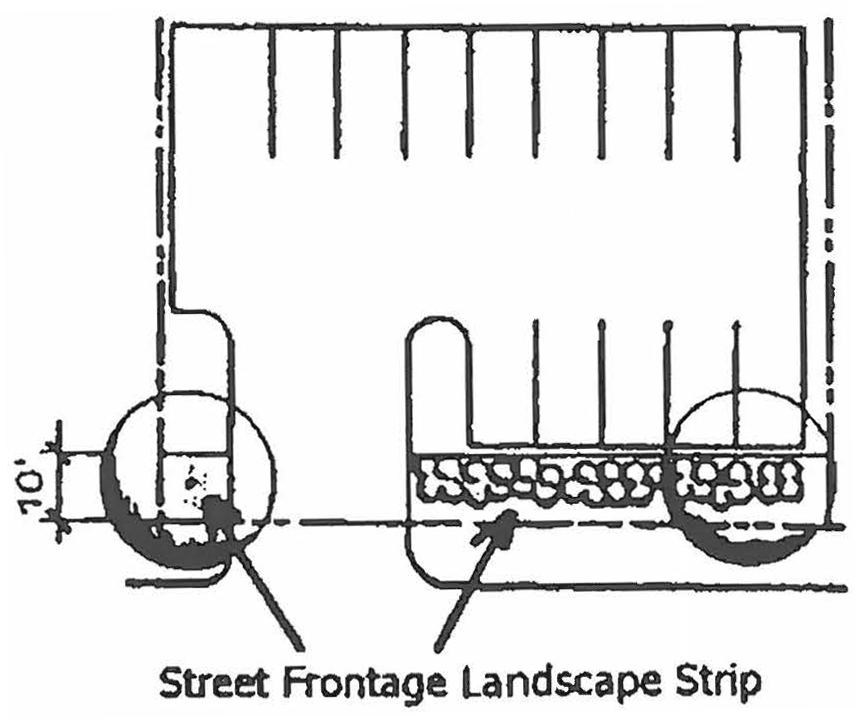 The minimum width for a tree landscape island or peninsula that is parallel to a parking space shall be nine feet, and the minimum length for the same shall be 18 feet. Each tree landscape island or peninsula shall contain a minimum of one shade tree and the balance of the area shall contain a permeable ground cover (see figure 6).