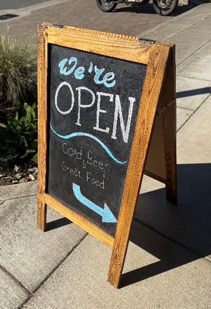 “A-frame sign” means a double-faced sign hinged or connected at the top which is spread for stabilization and set upon the ground. See also “Daily display sign” and “Sandwich board”.