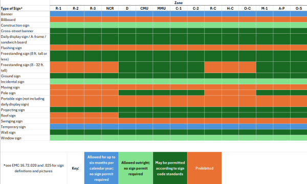 | Other Categories | Determined through Land Use Review, Site Design Review, or CU Review, as applicable |