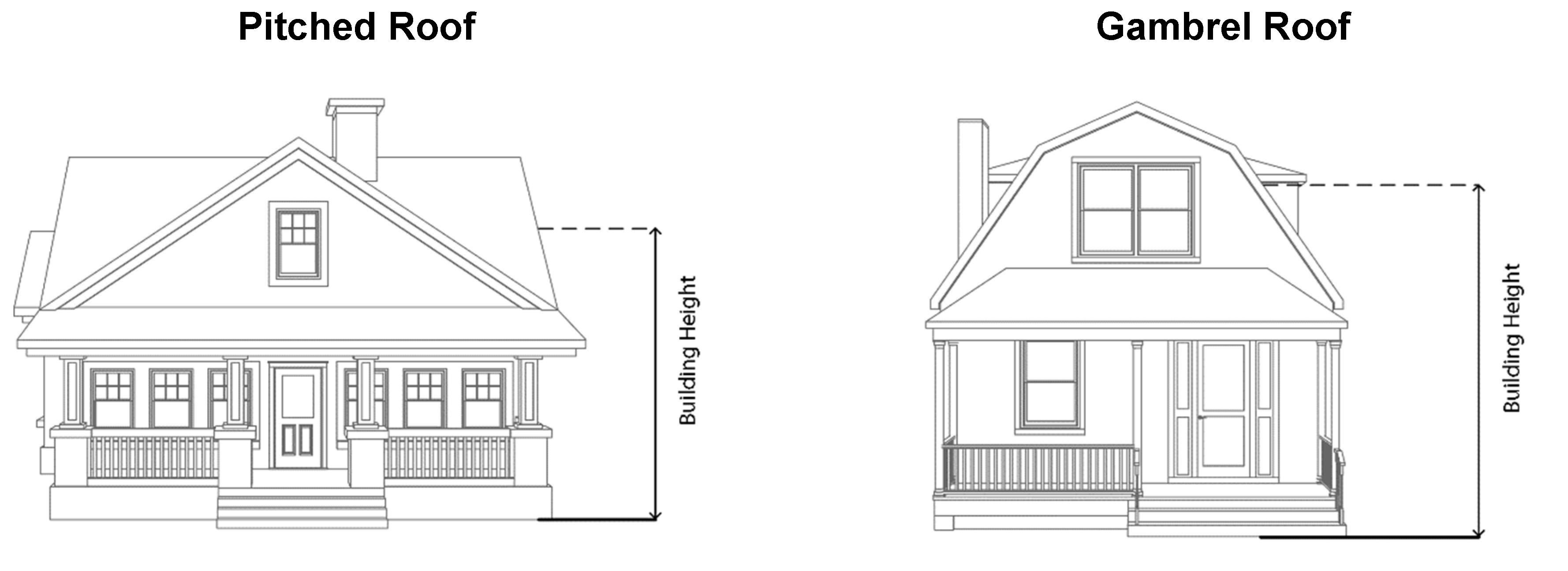 Figure 10-301.C-2: Gable, Hip, and Gambrel Roof Building Height Measurement