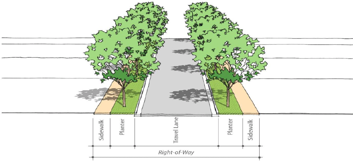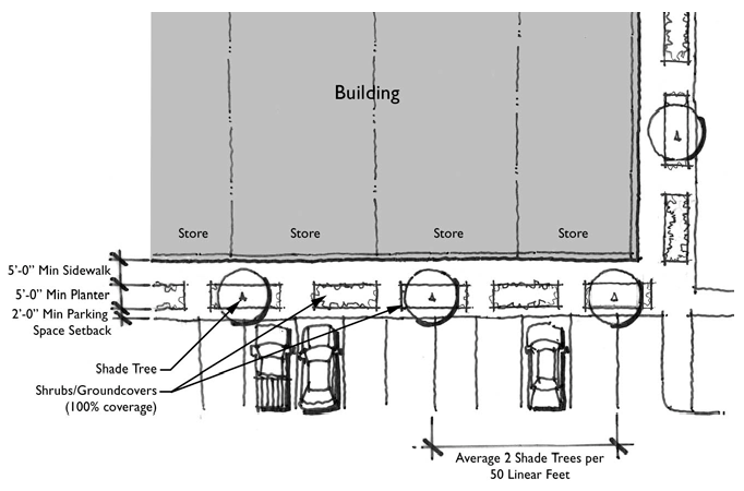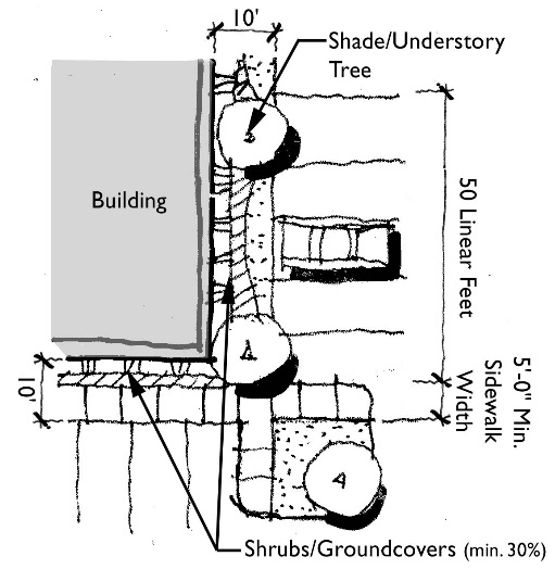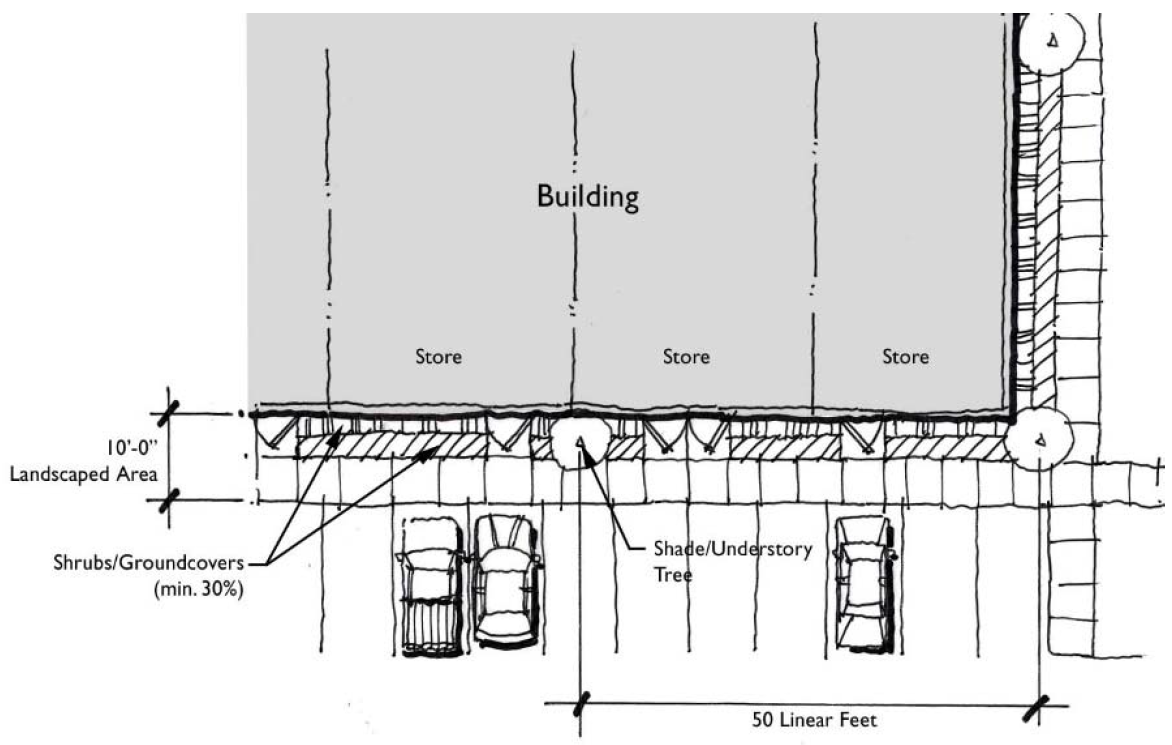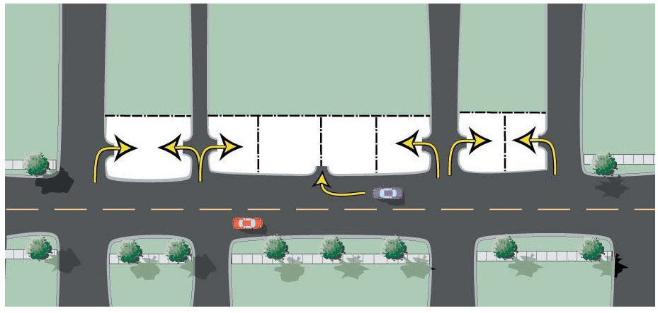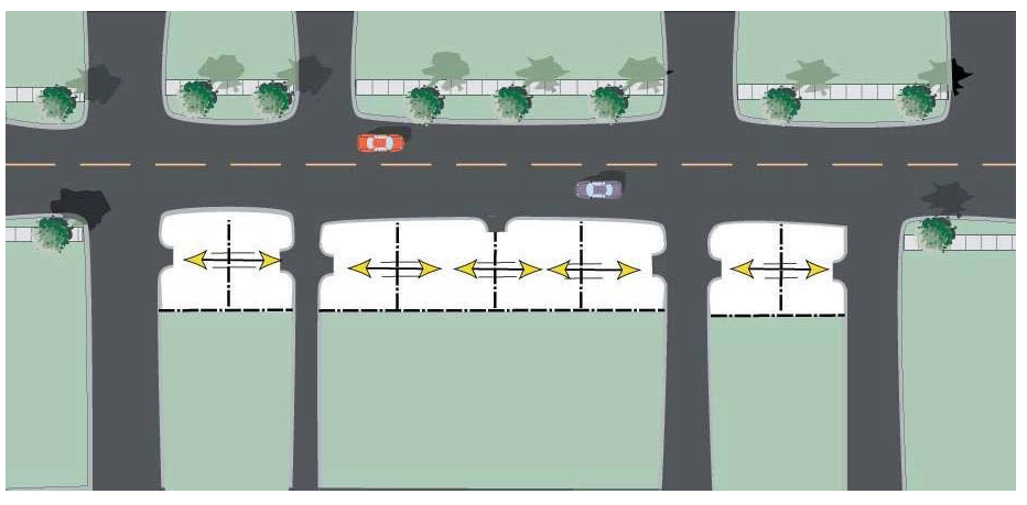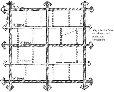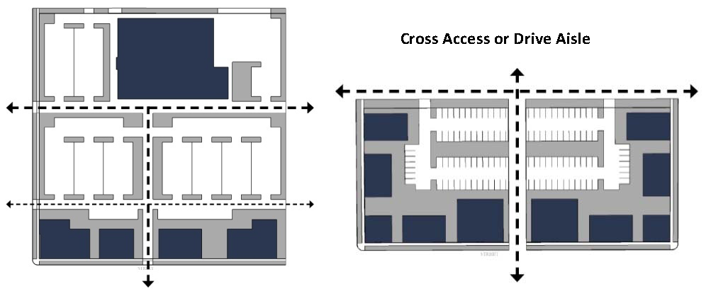 Stub-outs and other design features to make it visually obvious that the butting properties may be tied in to provide cross access via a service drive;