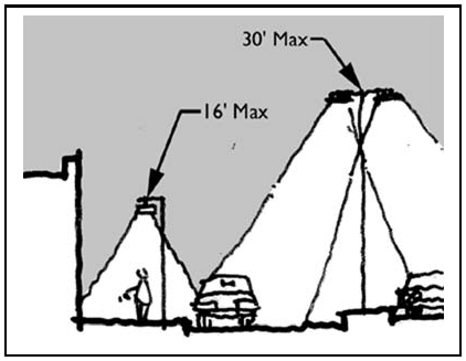 Indirect light sources must be shielded from the view of persons viewing the sign and be further shielded and directed so that the light shines only on the sign and that illumination beyond the copy area is minimized.