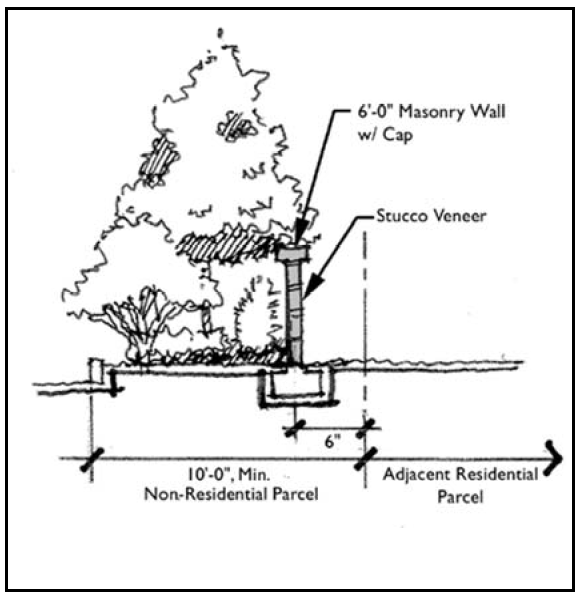 A consistent opaque buffer wall/fence is provided between the new lots and the existing or platted lots.