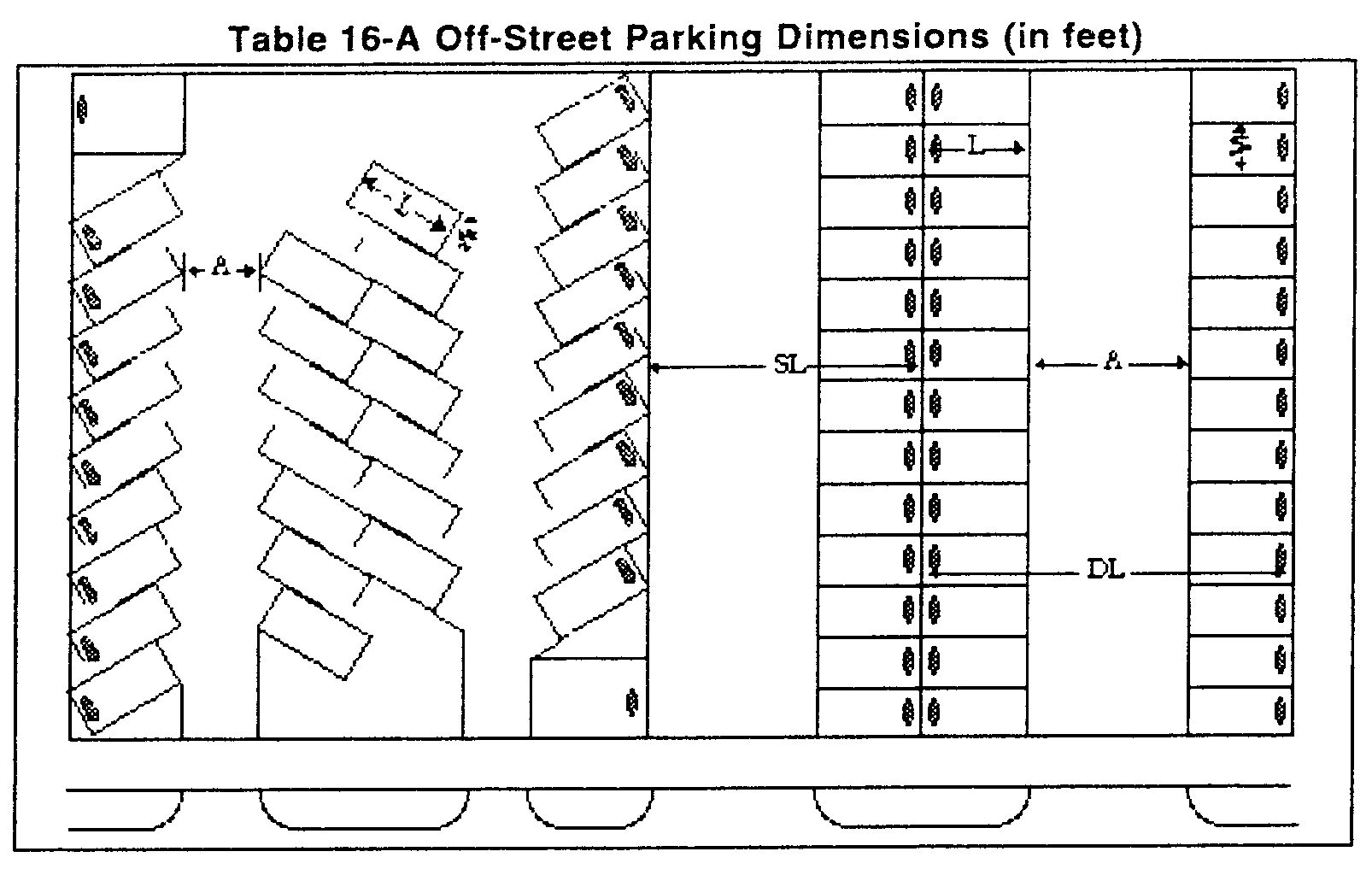 The dimensions for parking stalls and associated aisles are set forth in Table 16-A of this Section.