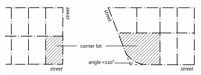 Street frontage. The proximity of a parcel of land to one or more streets. An interior lot has one street frontage and a corner lot has two or more frontages.