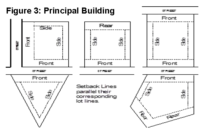 Yard line: A line in a lot that is parallel to the lot line along which the applicable yard extends and which is not nearer to such lot line at any point than the required depth or width of said yard.