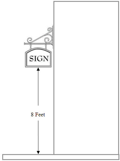 (b) Minimum height above sidewalk or grade eight (8) feet. Shall not be higher than the eave from which the sign projects if attached to a single story building or fifteen (15) feet above grade whichever is less or the height of the bottom of any second story window if attached to a multi-story building.