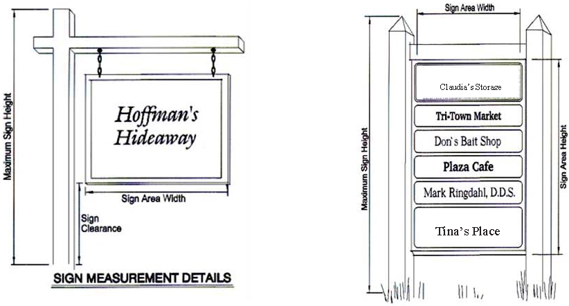 This section includes a series of sign matrices that address permitted, exempt or prohibited signs, sign area, sign illumination and sign height. These tables are intended to assist the user in understanding the type, size, illumination and height of various signs in each zone district. This information is intended to be used in conjunction with the Fairplay Zone District Map and other sections of these regulations.