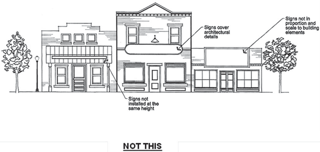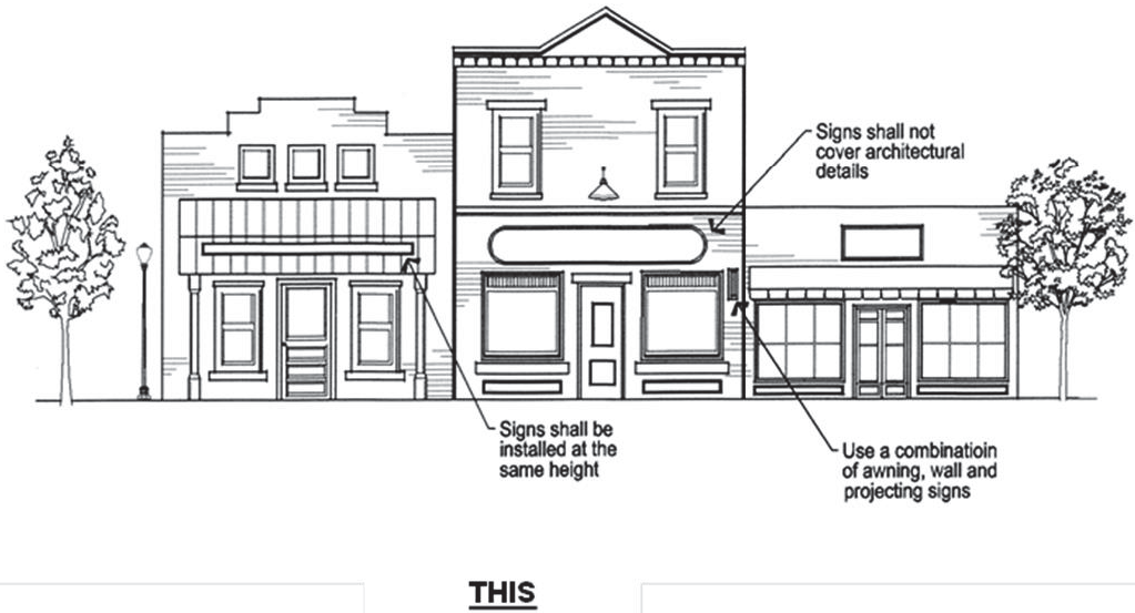 Ensure signs are compatible and integrated with a building's architectural design and with other signs on and near the property.