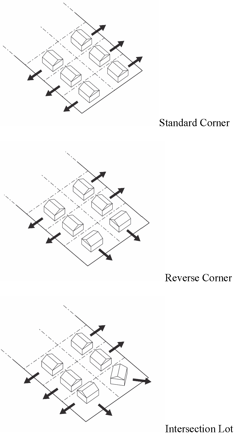 Standard corner lot. Standard corner lots are lots that are oriented the same as all other lots on the block, with a side yard adjacent to the side street.