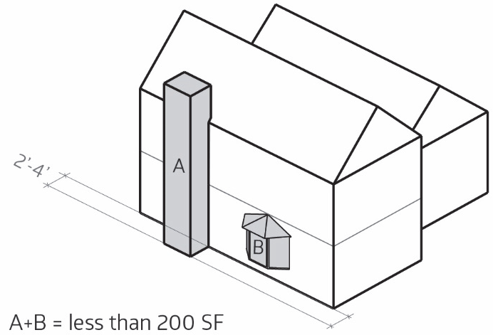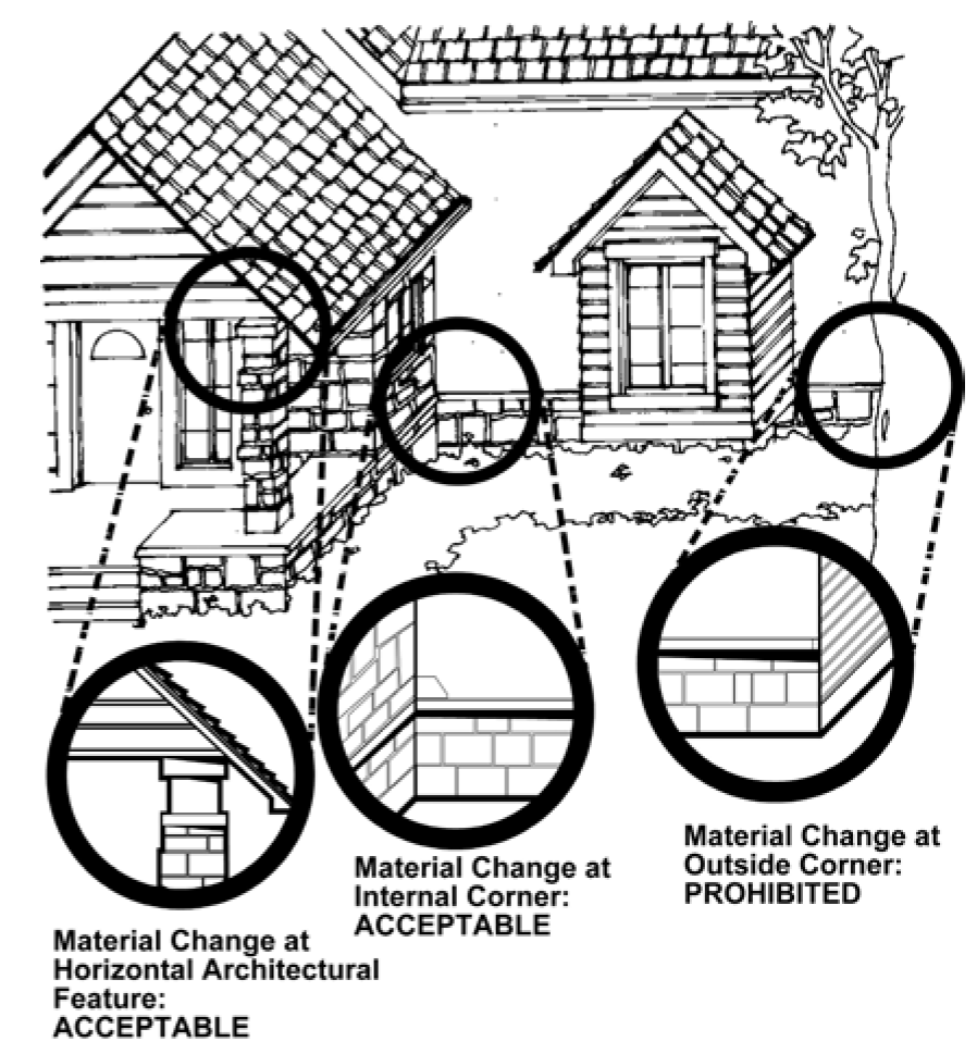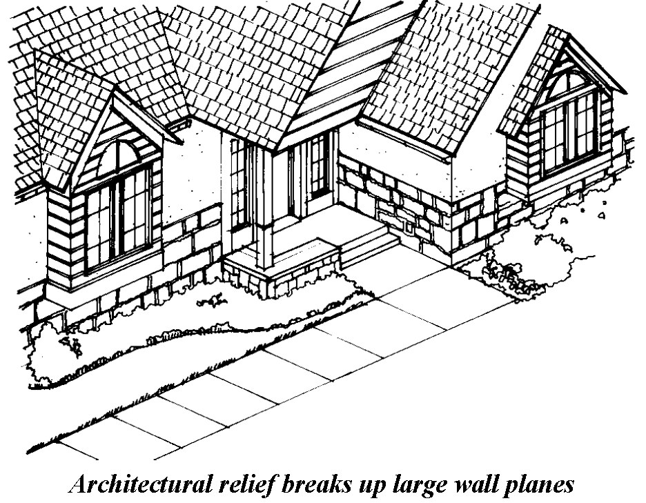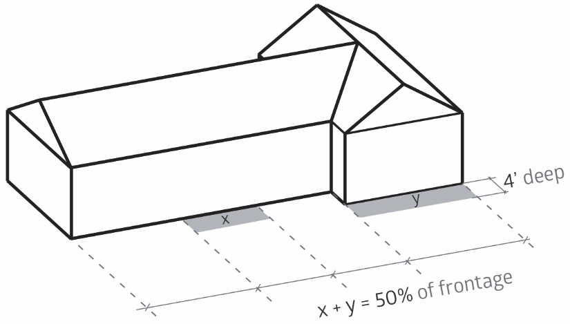 Off-sets in the façade between three feet (3') and ten feet (10') over at least twenty-five percent (25%) of the façade; or