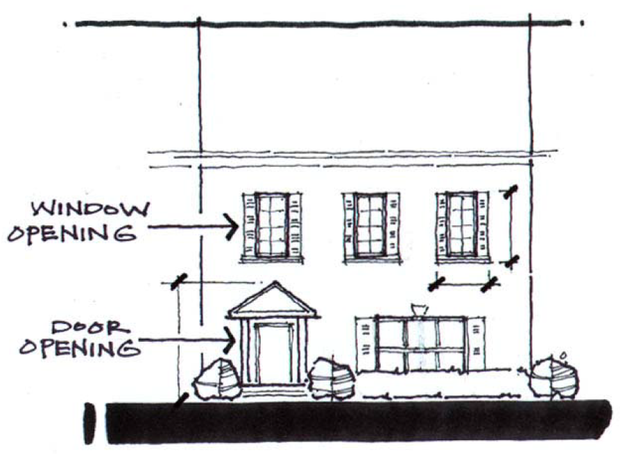 All street-facing façades shall have doors or window openings of at least twenty-five percent (25%) of the façade.