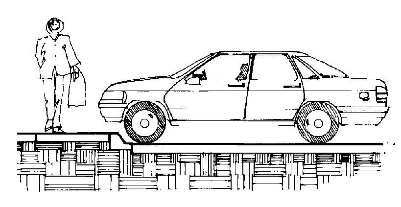 All off-street parking shall be located behind the street edge or in cases where it is in front of the street edge, it shall be screened by:
